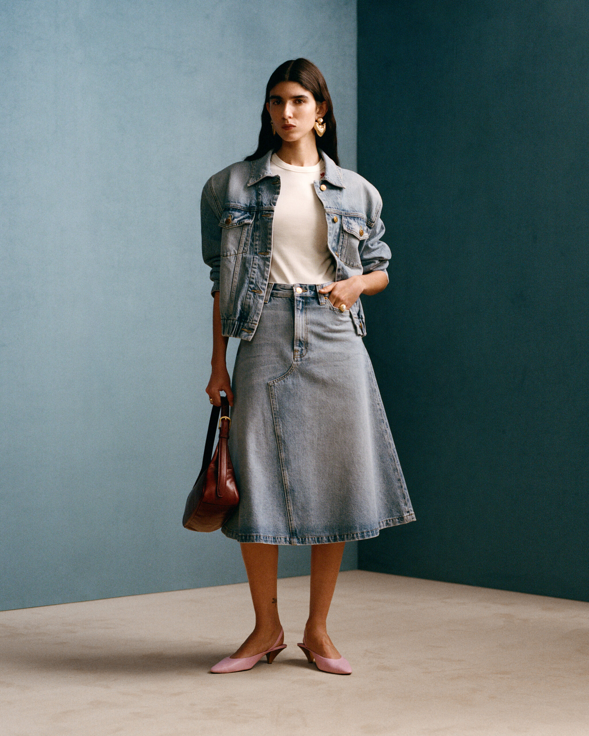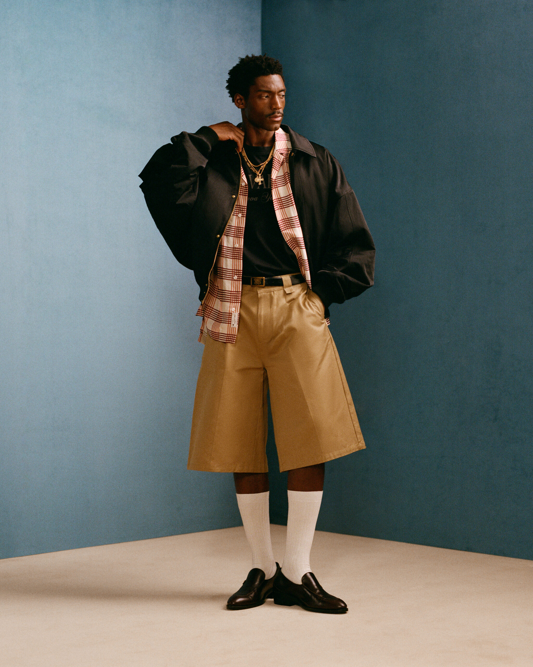 Cue Chavarria’s sartorial imagination. Think American workwear and leisure of past decades via tailoring and silhouettes and Italian fabrics, leather, denim, knits, jerseys, and more.
